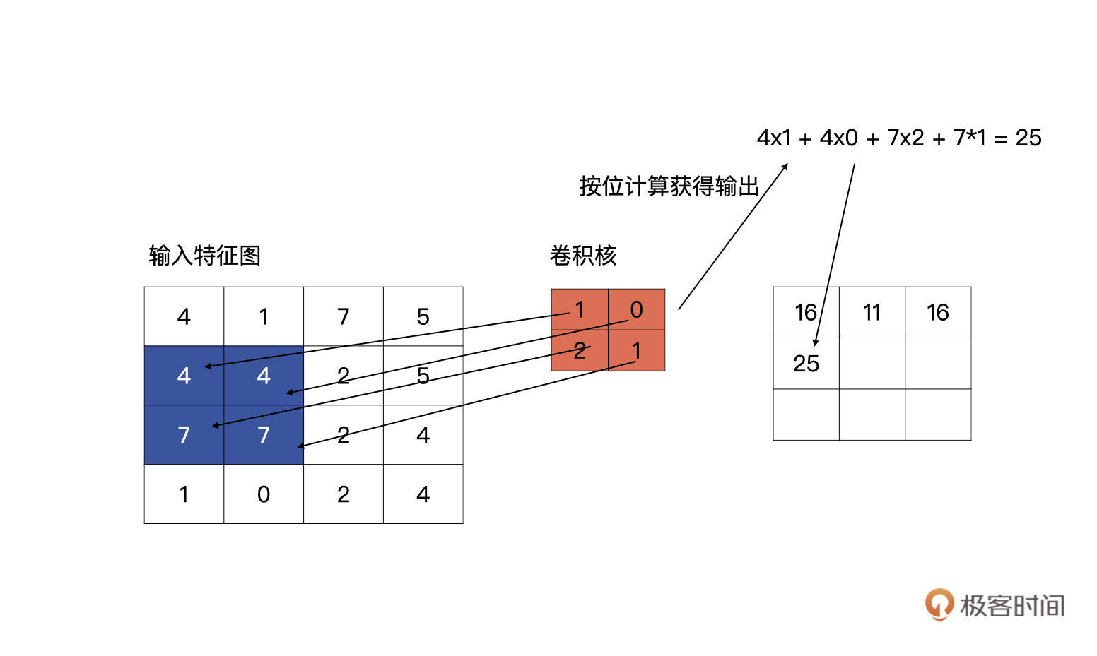 让我们回到开头的例子,可以发现,输入的尺寸是4x4,输出的尺寸是3x3。你有没有发现,输出的特征图变小了?没错,在有多层卷积层的神经网络中,特征图会越来越小。