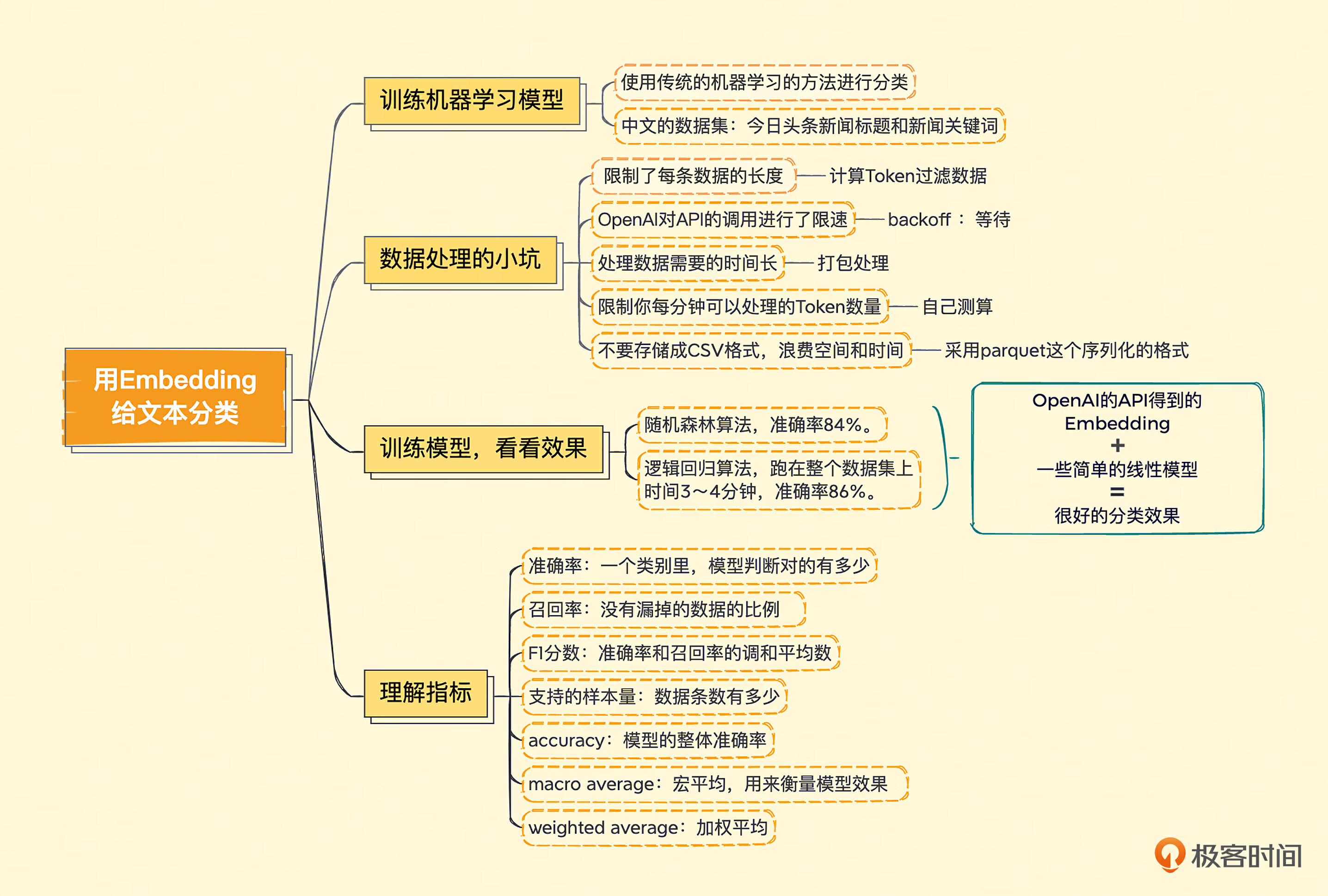 第二件,是如何直接利用拿到的Embedding,简单调用一下scikit-learn,通过机器学习的方法,进行更准确的分类。我们最终把Embedding放到一个简单的逻辑回归模型里,就取得了很不错的分类效果。你学会了吗?