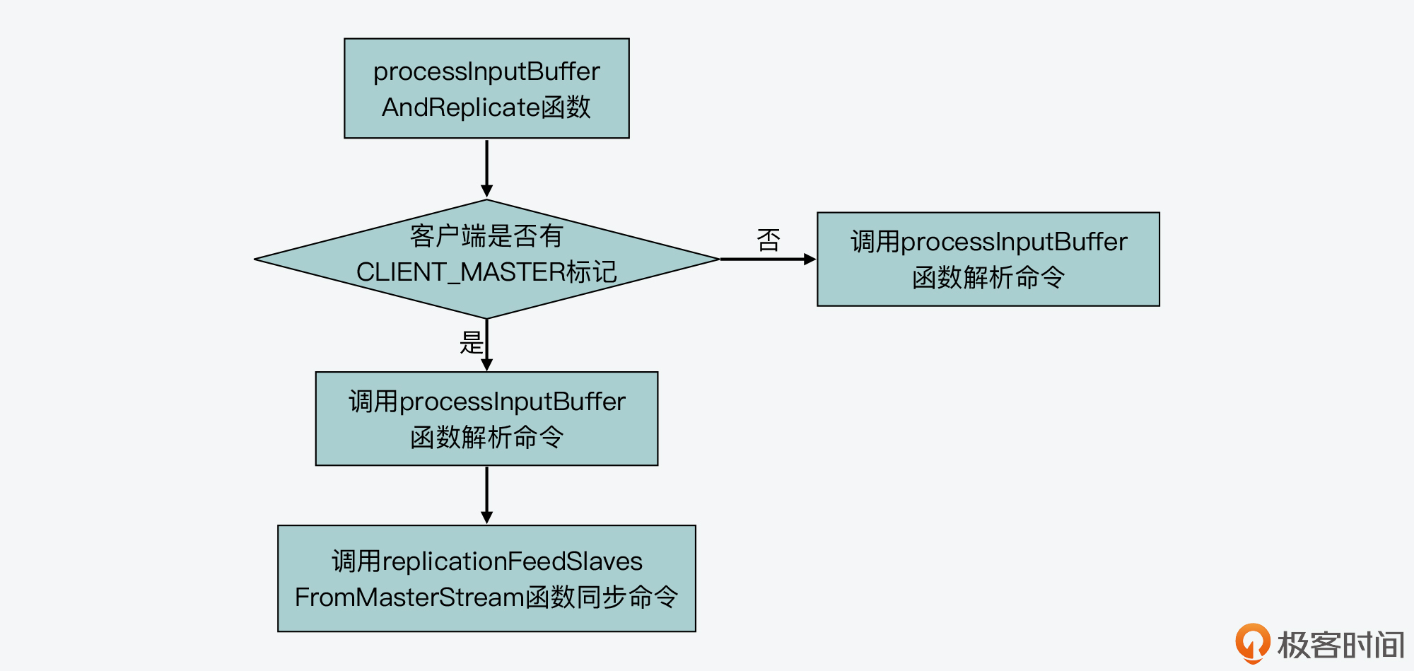processInputBufferAndReplicate函数(在networking.c文件中)会根据当前客户端是否有CLIENT_MASTER标记,来执行两个分支。