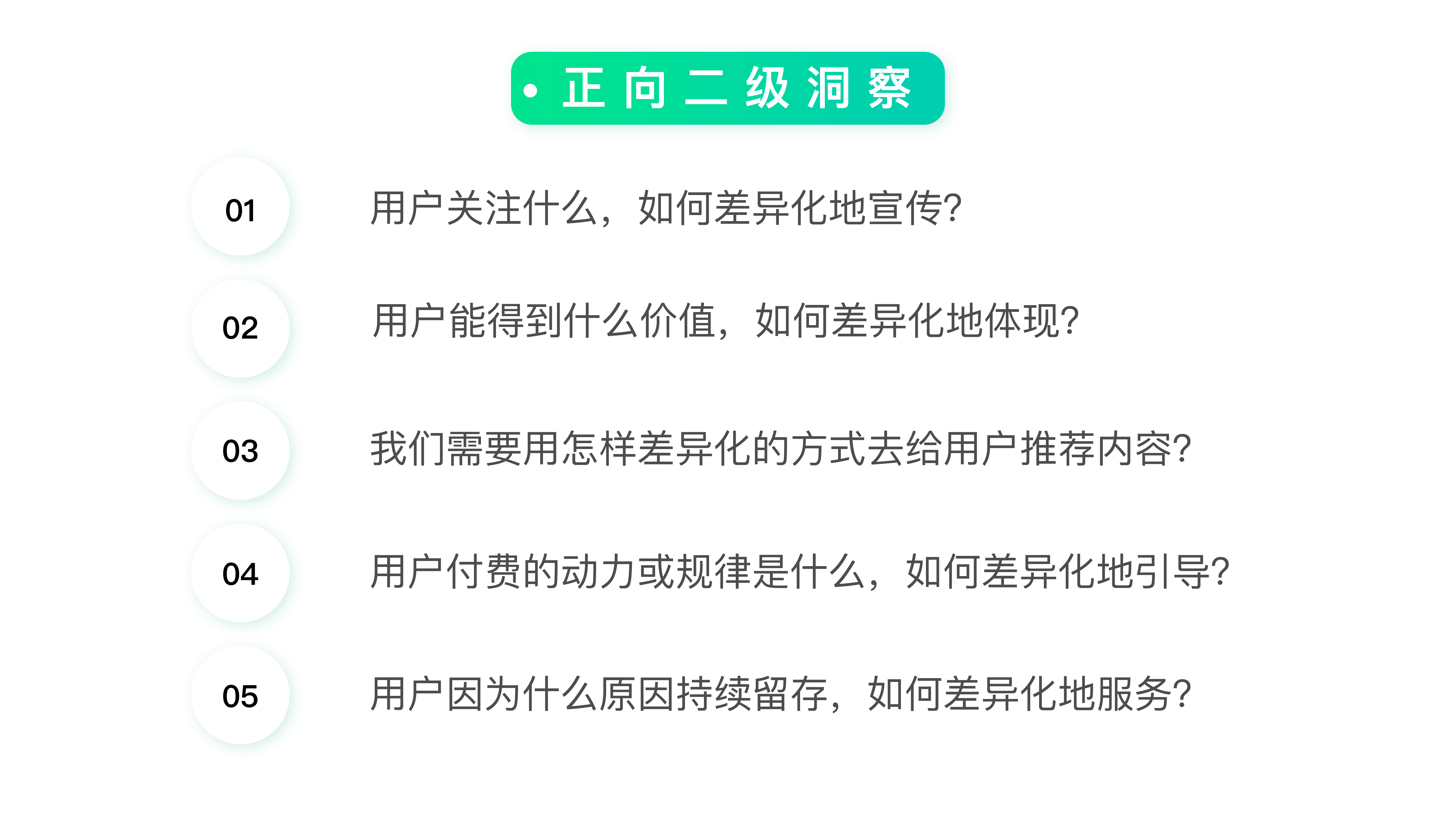 如果你不知道从何入手做正向的二级洞察,可以参考下面这五个常规问题。