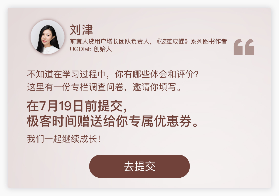 写这个专栏对我自己来说是个很大的挑战,因为这的确是个很新的原创理念,没有太多可参考的东西。我需要在自己的实际工作中总结经验,并通过小班线上课程不断打磨、迭代,才有了今天你们看到的这个专栏。今后我还会继续沉淀、继续积累,希望未来可以带给你们更好的内容。