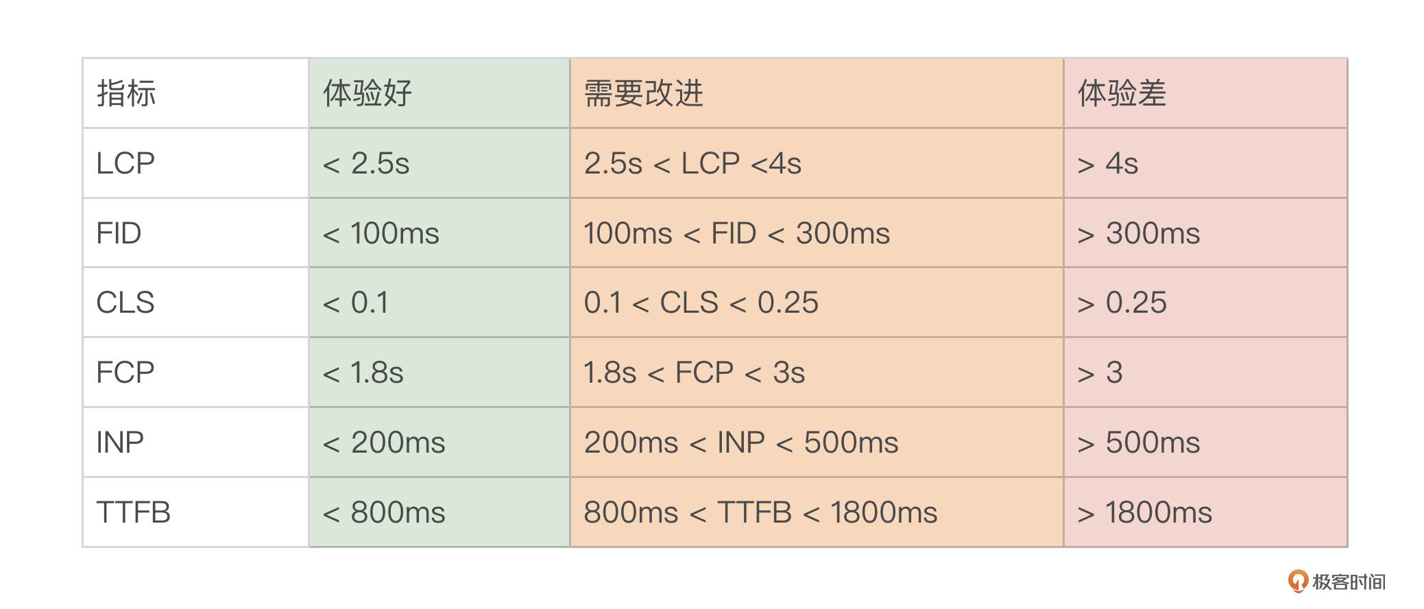 其实,每一个网页指标都代表着一种场景,我们可以通过一种标准参考值来衡量用户的体验效果。