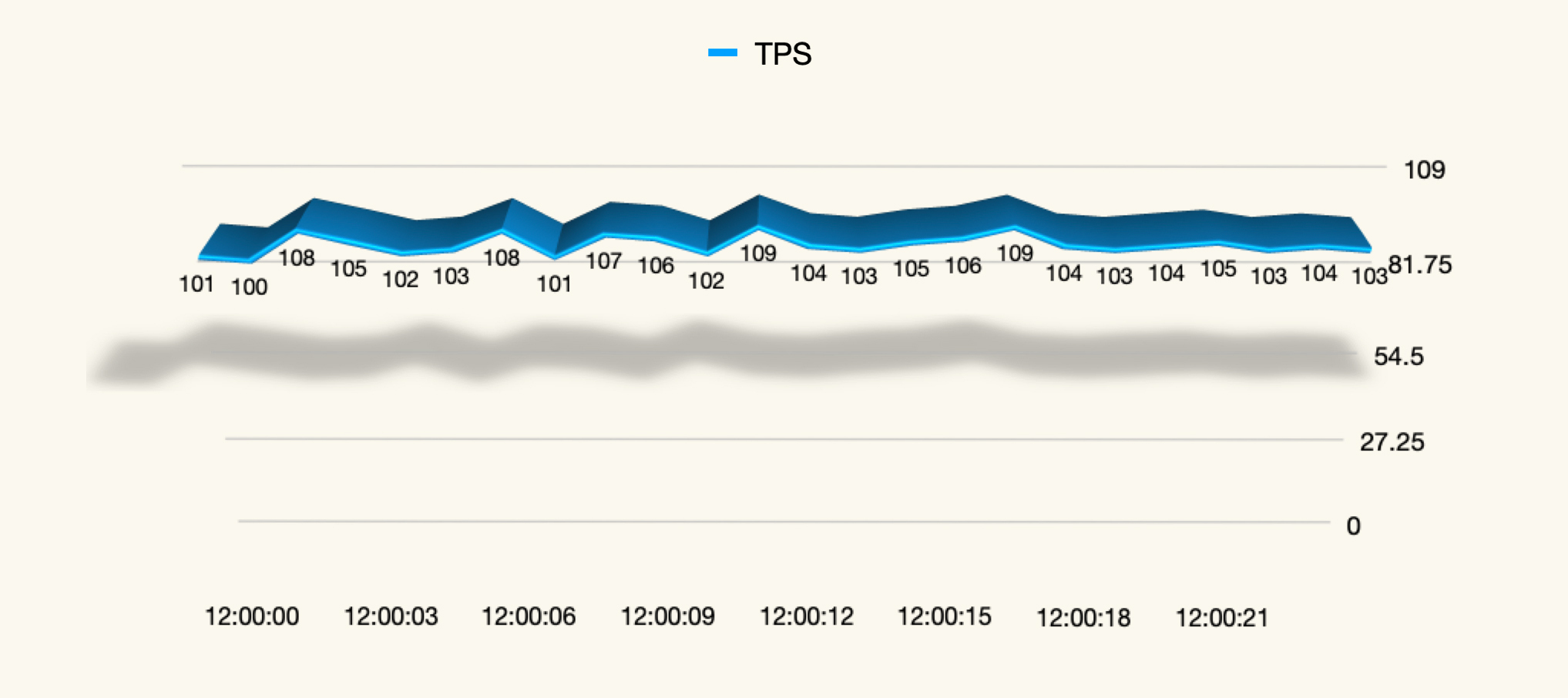 (注:不知道你有没有发现,上面这张示意图其实是有问题的。因为显然上图是在固定的压力线程之下的,而中间有一个很高的毛刺,这就有问题了,如果全都是正确的事务,不应该出现这么高的毛刺。所以这种毛刺通常都是在压力过程中由事务错误导致的。 )