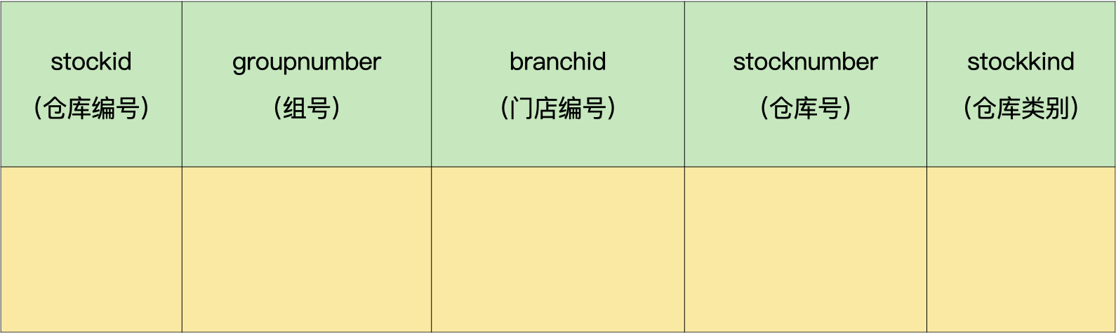 - 仓库:组号、门店编号、仓库编号、类别。