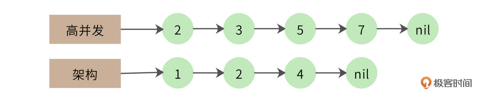 事实上,两个1千万长度的链表求交集,最终的结果可能不过几万,也就是说,大部分的比较都是不相等的。比如下面的例子。