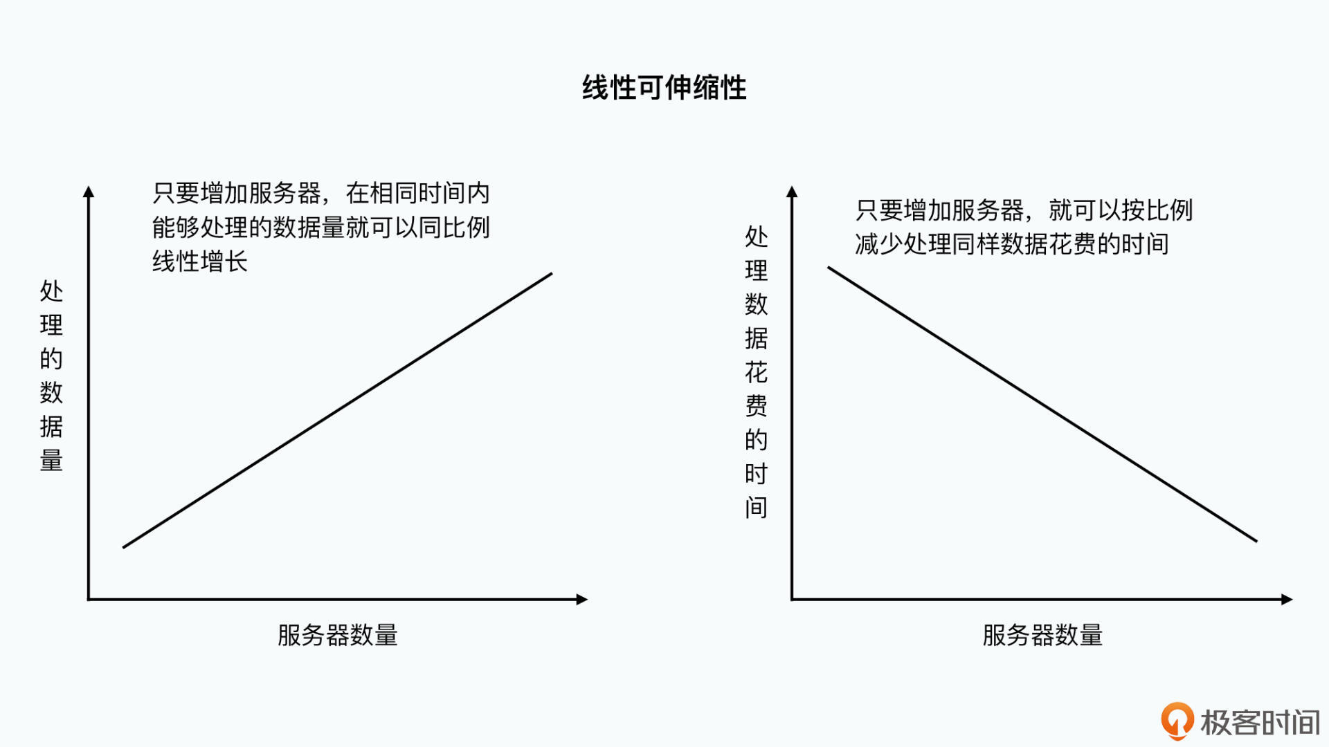 第二种,是需要汇总多条数据才能完成计算。比如,要统计日志里面某个URL被访问了多少次,只需要简单累加就可以了。或者我们需要更复杂一些的操作,比如统计某个URL下面的唯一用户数。而对于这里的第二种情况,我们就需要将所有相同URL的数据,搬运到同一个计算节点上进行处理。不过,在搬运之后,不同的URL还是可以放到不同的节点进行处理的。