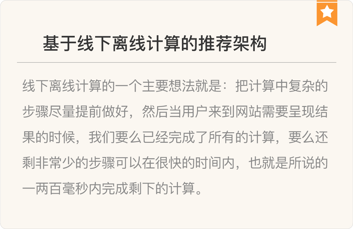 - 能够在一两百毫秒内给用户提供当前的推荐结果;