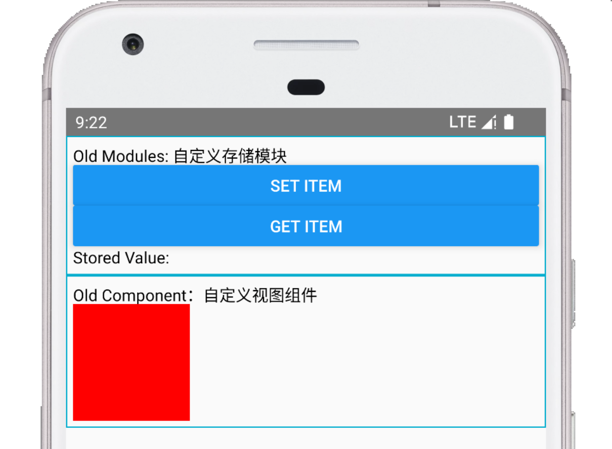 老模块是自定义的简化版存储模块 StorageModule。它有两个方法,一个是利用键值对的形式存储字符串,另一个是使用键去读取存储在 Native 端的值。如果存储(SET ITEM)和读取(GET ITEM)成功,那么就说明这类老模块代码能在新架构中直接使用。