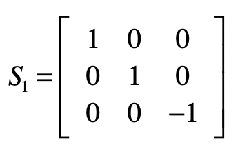 对于目前的结果矩阵来说,除了最后一列,它已经变成了一个上三角矩阵,也就是说消元步骤完成。接下来,我们要使得最后一列之外的部分变成一个单位矩阵,就能得到最终的方程组解。和消元不同的是,我们将从最后一行开始。对于最后一个方程,我们只需要把所有系数取反就行了,所以会使用下面这个矩阵$S1$实现。