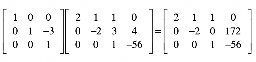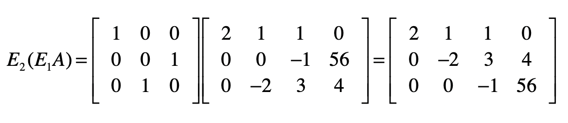 我们先让$E1$左乘$A$,然后再让$E2$左乘$E1A$的结果,就能得到消元后的系数矩阵。
