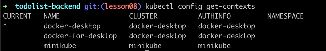 1 | kubectl config get-contexts |