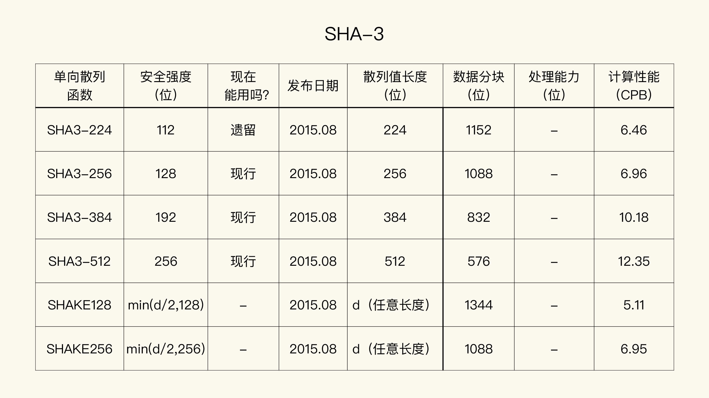 而我们说,SHA-3的设计,放弃了在数据补齐方案里使用固定位数表示输入数据长度的做法,它也就不再有数据处理能力的限制。