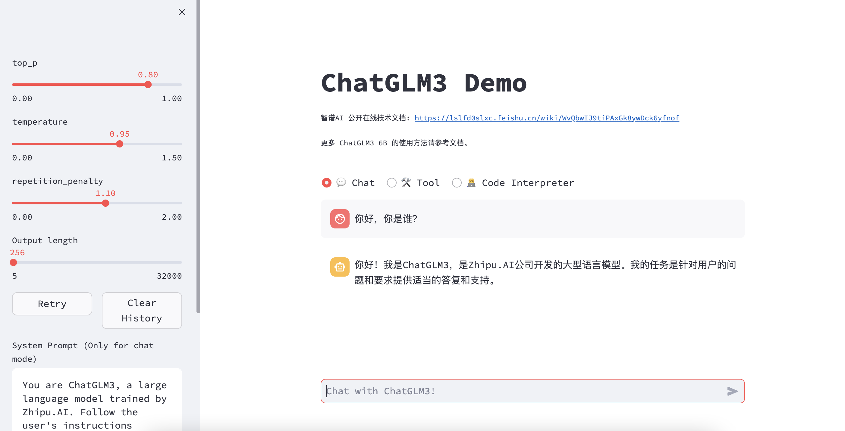 ChatGLM3-6B有3个参数可以设置。