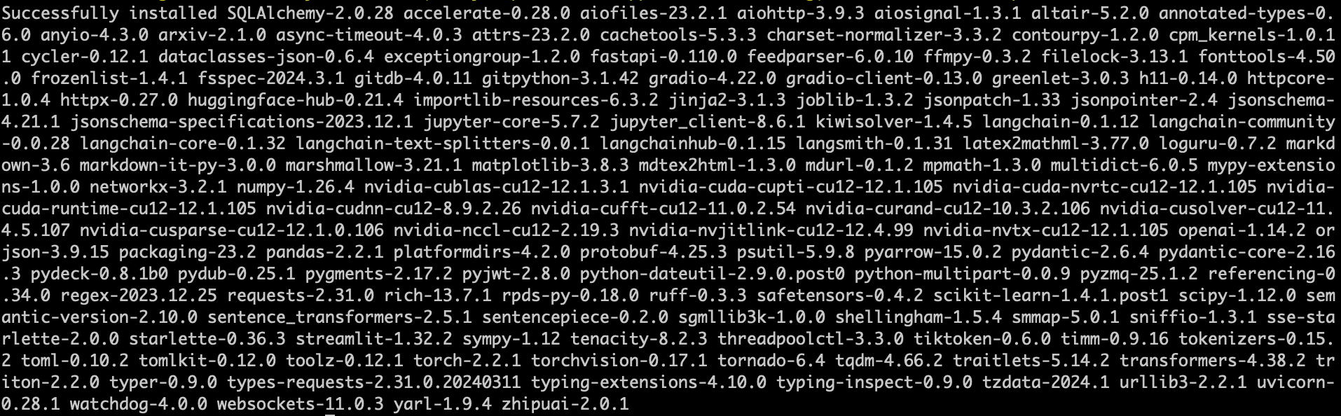 显示以下内容表明依赖安装成功。
