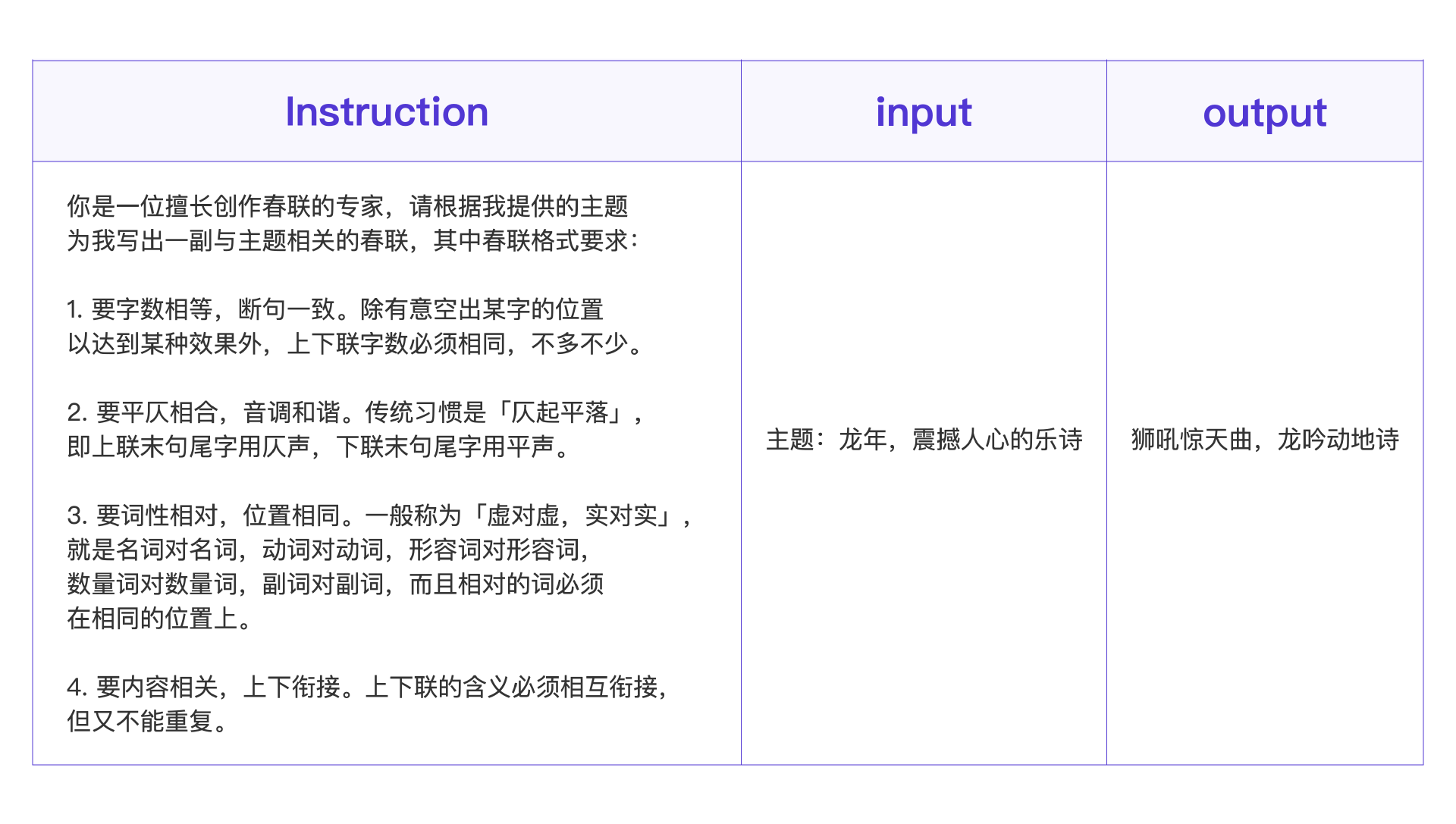举个例子,现在,我要用讯飞星火大模型微调一个春联模型,看一下整体的数据格式。