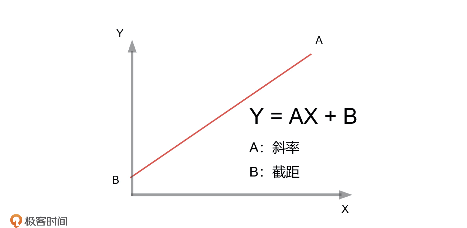 刚才,我们一直提到“直线”,那你还记得直线的数学公式吗?我们今天会一直用到它,所以我先带你来复习一下。