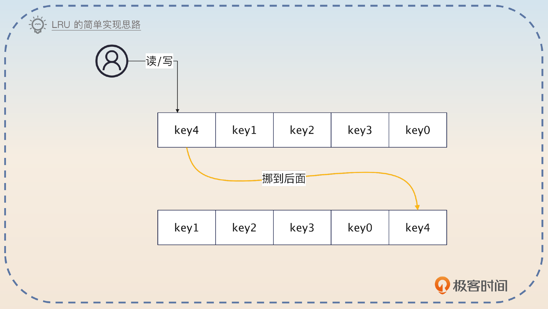 这里访问是一个含糊的说法,你可以认为读写都是访问,也可以认为只有写是访问。所以有个 LRU 的变种是只有在写的时候,才会挪动这个 key,读并不会,也就是它倾向于保留写频繁的数据。