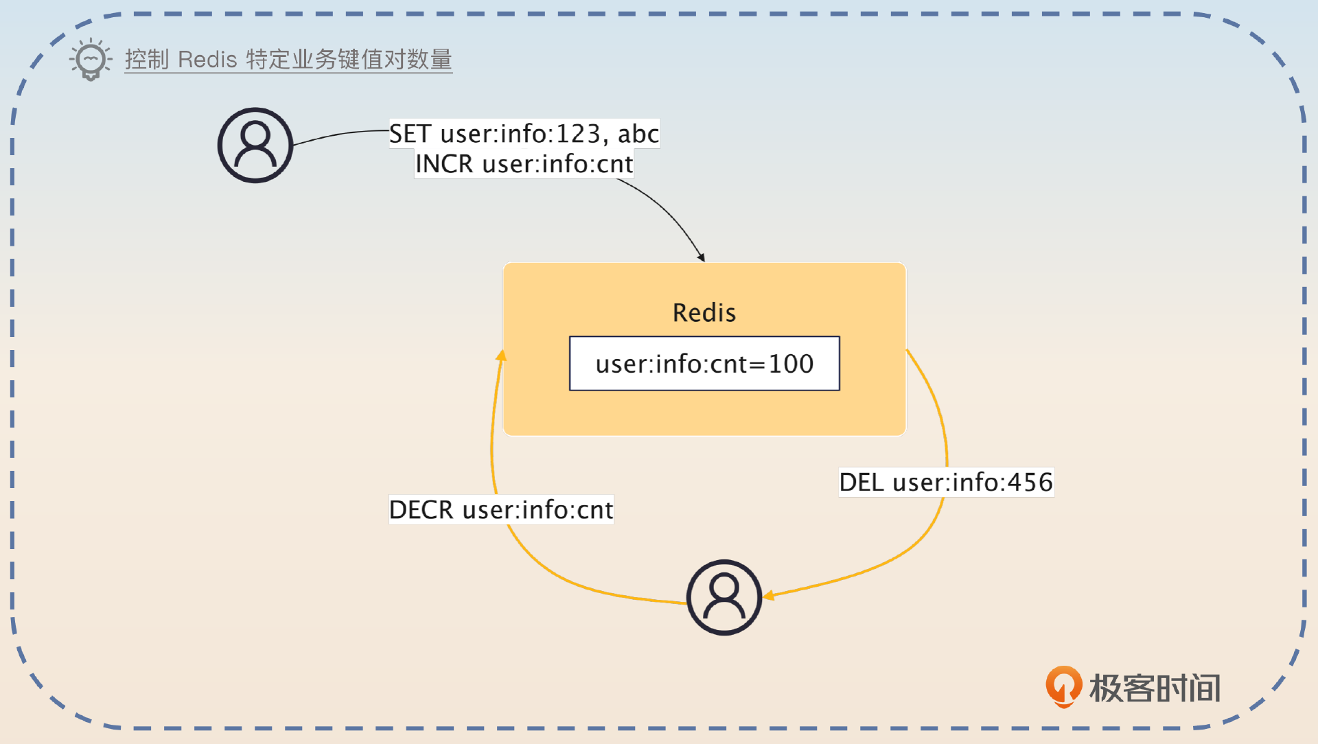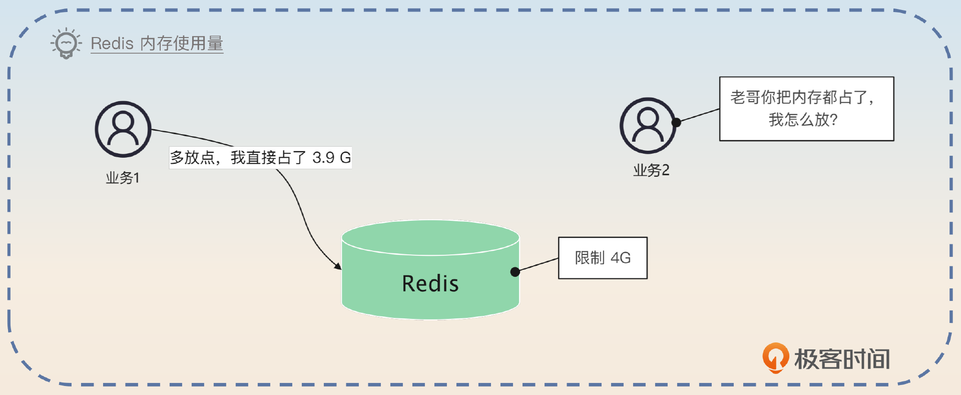 - 我在这一节课里面只说了,可以在 Redis 上控制键值对数量来间接控制内存使用量。实际上要直接控制某个业务的内存使用量也不是不行,就是非常麻烦,你觉得可以怎么做?