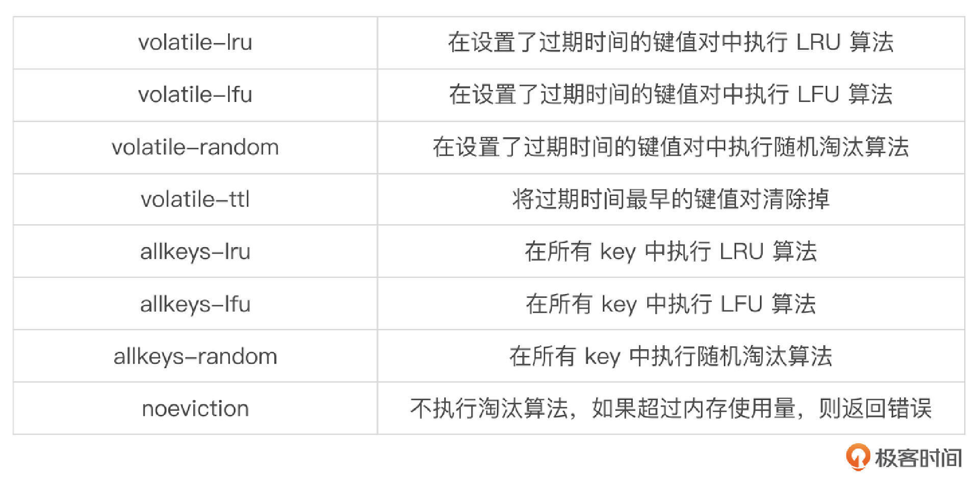 这里我稍微解释一下这个总结里面提到的几种淘汰策略,你在面试官问到的时候可以补充说明。