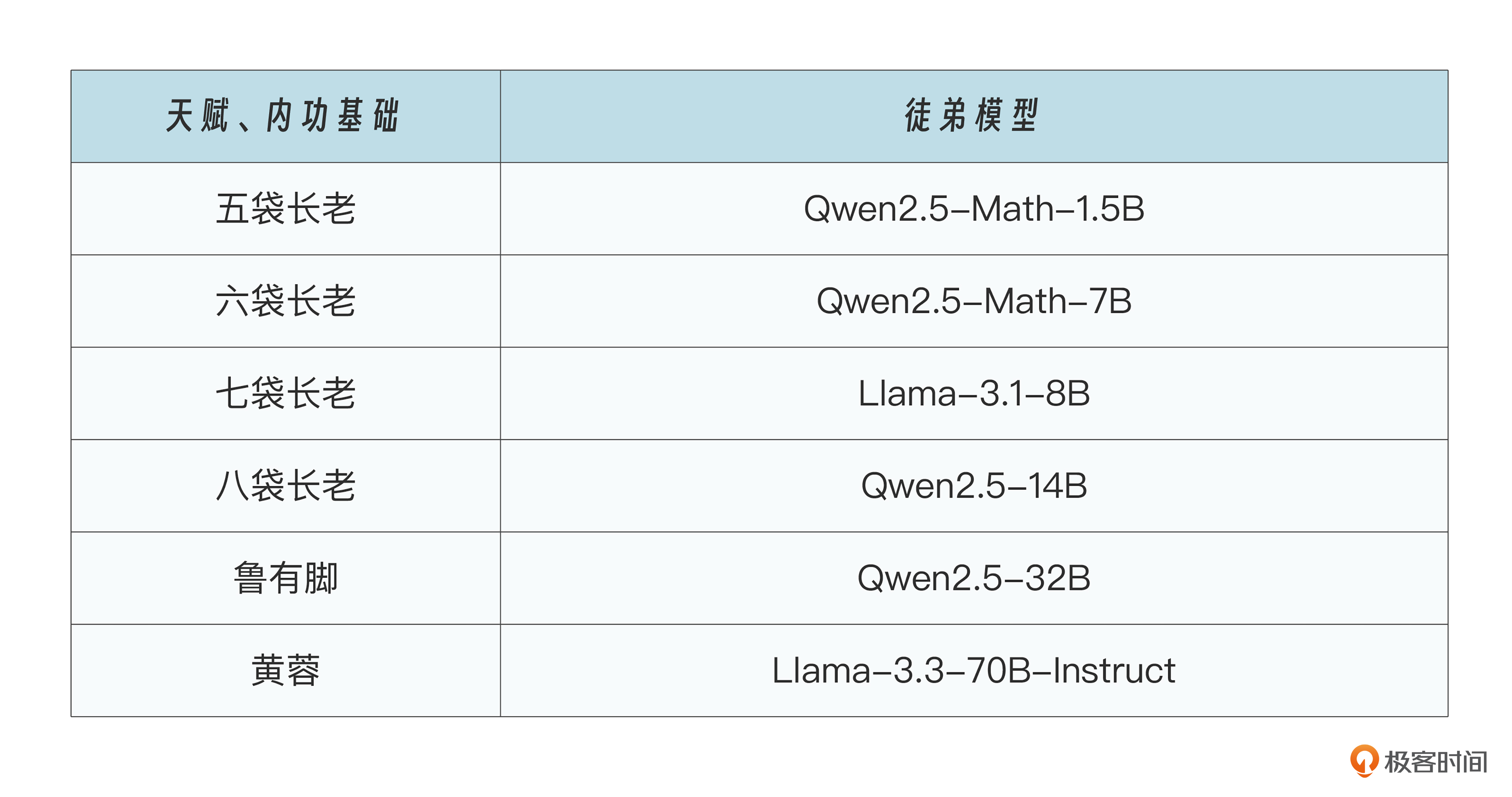 以 DeepSeek 发布的六个蒸馏模型为例,满血版 671B 参数量的 DeepSeek R1 就是洪七公,而洪七公针对不同尺寸的徒弟模型进行武功蒸馏,这些徒弟模型包括: