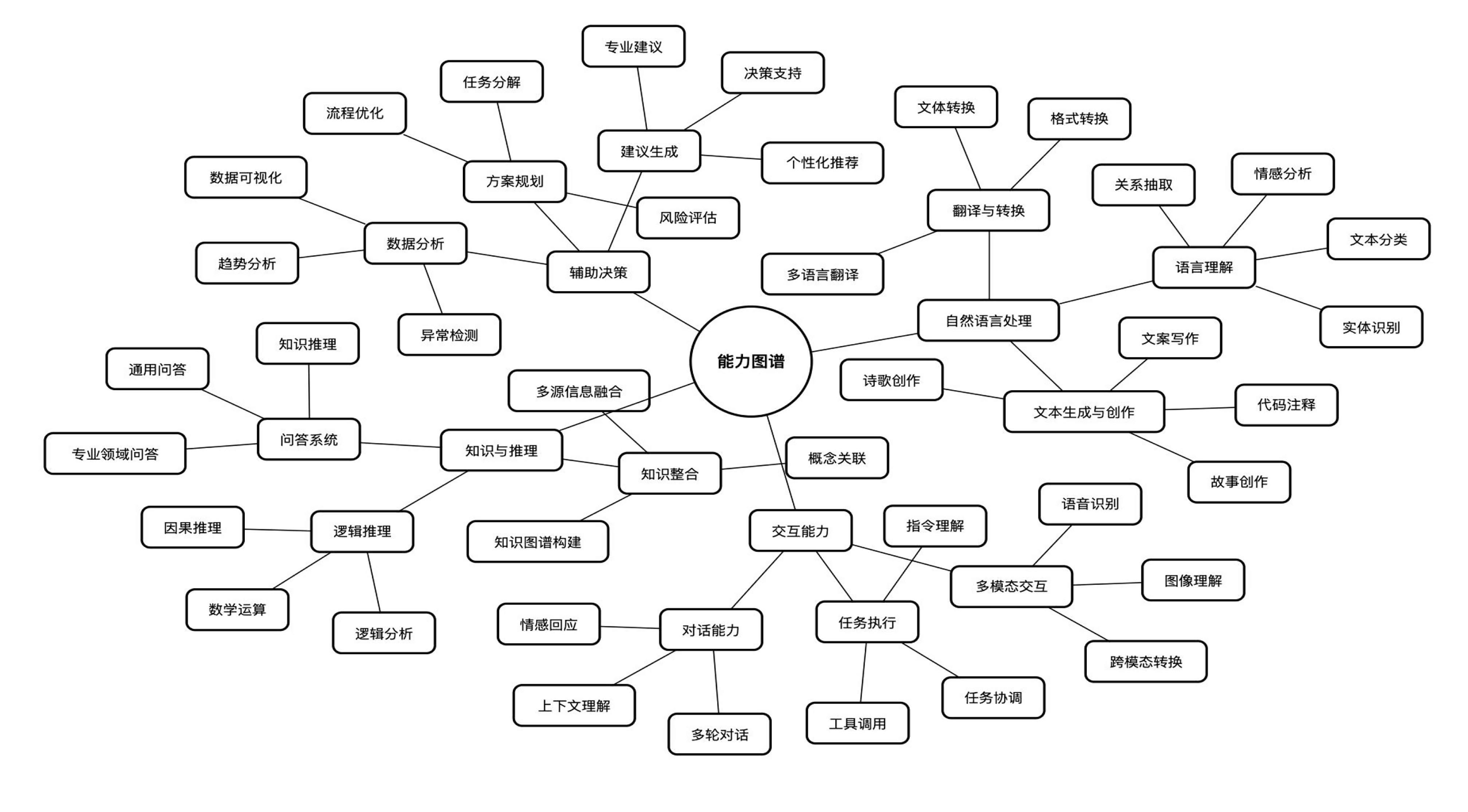 之前清华大学公开了一个 《DeepSeek 从入门到精通》的 PPT,其中有一页列出了 DeepSeek 的能力图谱,也就是下图,大家可以参考一下,并思考DeepSeek在自己熟悉的业务领域内,能做什么事情。