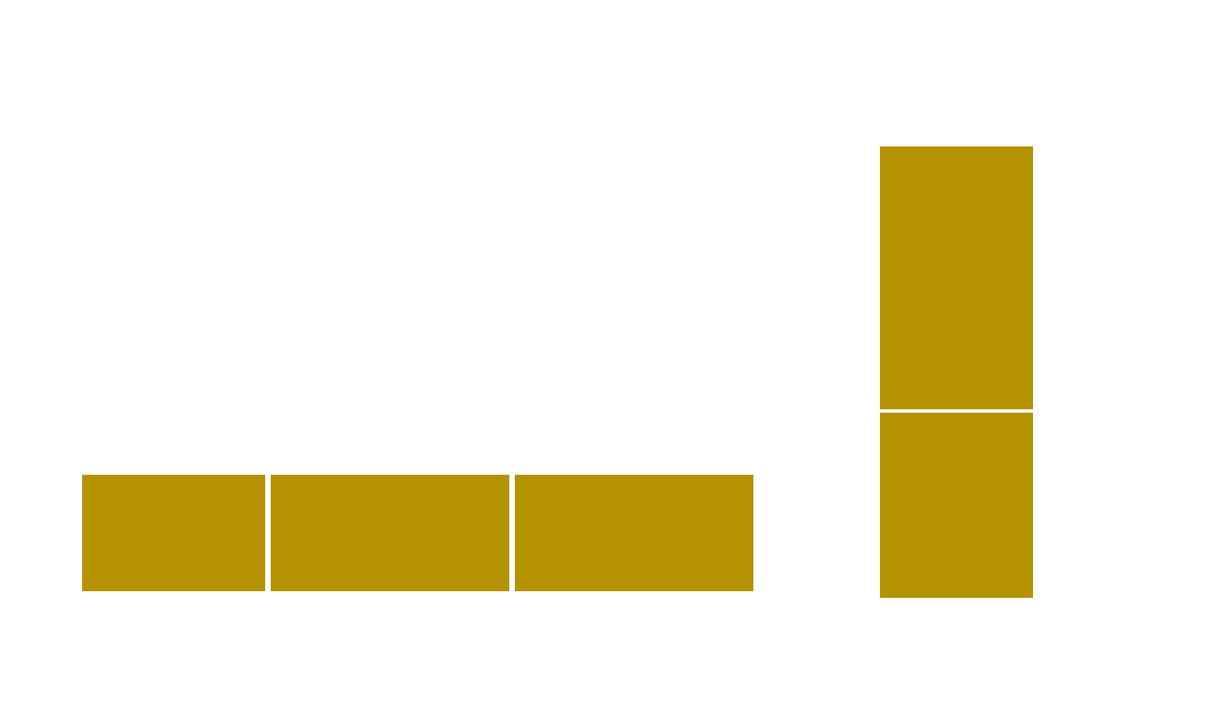 现在请你把目光聚焦在左下角那3个环形图上。对于这个区域,采用相同布局方式继续切分当然是可以做到的,但是效率并不高。下面这张图上,我把这个区域所需的布局操作用黄色线画出来了。你可以数一数,一共需要9次操作才能完成对这个小区域的布局,而在前面的图中,我们布局整个页面也才花了8次操作。