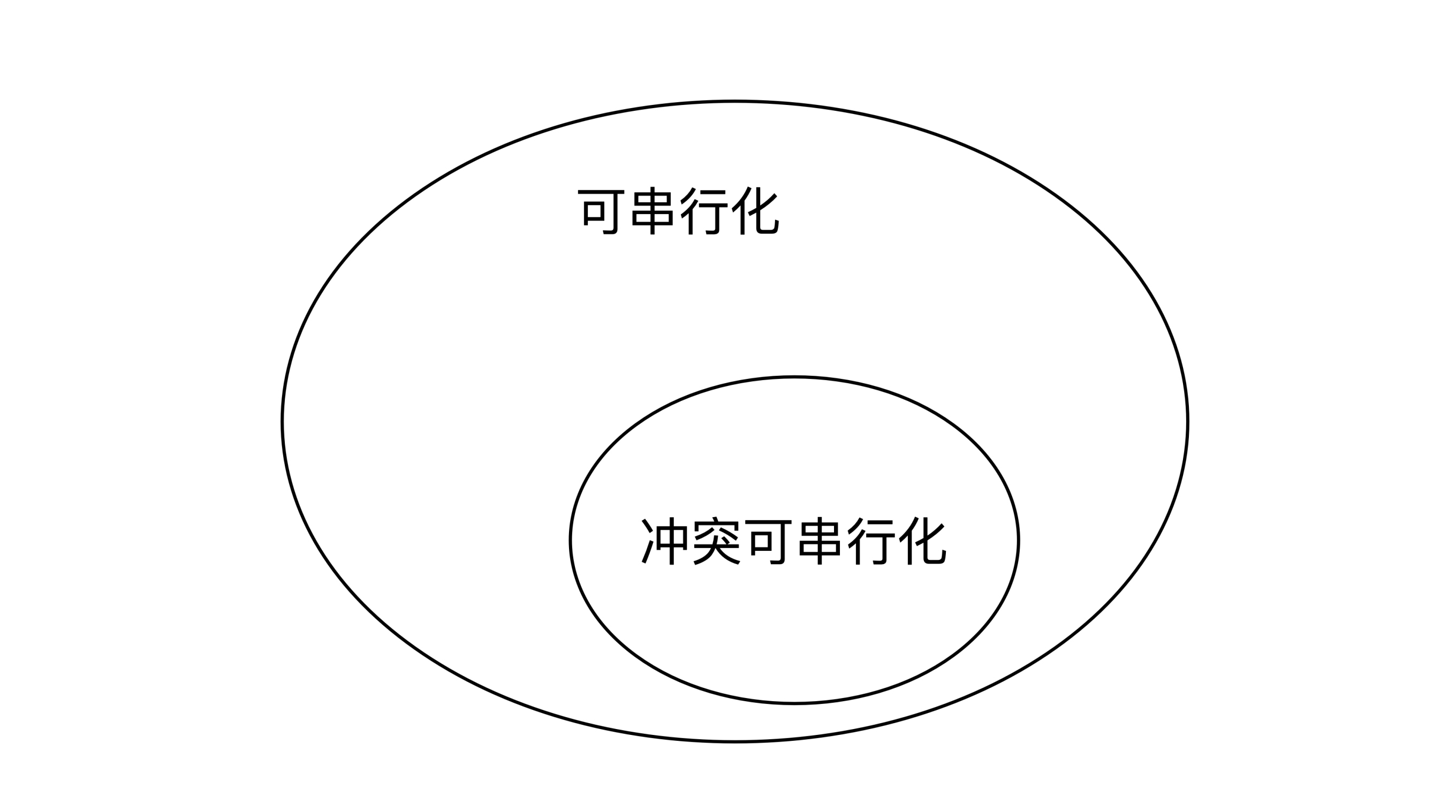 所以冲突可串行化的集合是可串行化的子集,就像下面这幅图展示的一样: