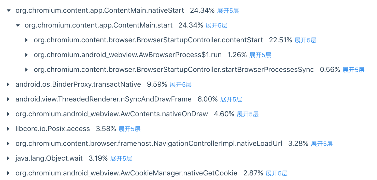 这里我非常推荐卡顿树的做法,对于超过3秒的卡顿,具体是4秒还是10秒,这涉及手机性能和当时的环境。我们决定抛弃具体的耗时,只按照相同堆栈出现的比例来聚合。这样我们从一棵树上面,就可以看到哪些堆栈出现的卡顿问题最多,它下面又存在的哪些分支。