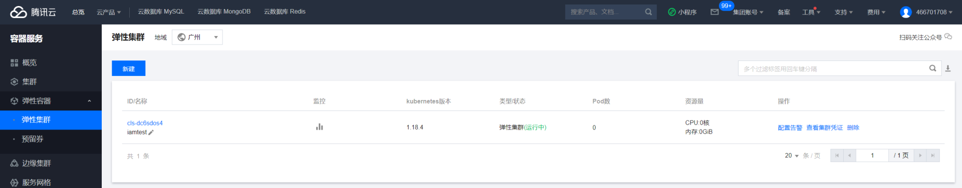 我们创建的弹性集群ID为cls-dc6sdos4。