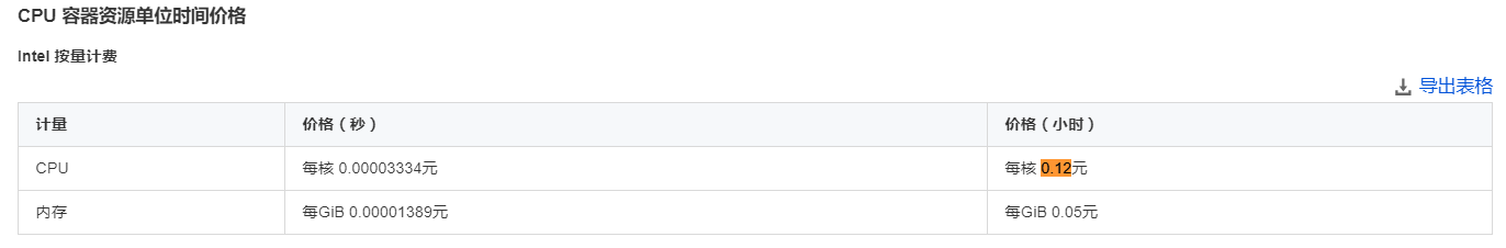 - 0.25 x 0.12:连续运行1小时的CPU配置费用。