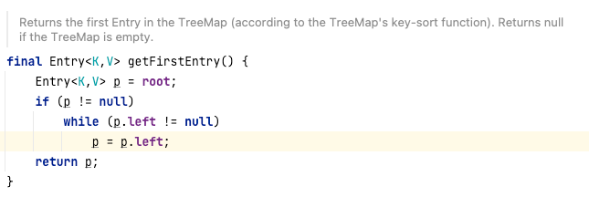 在TreeMap中实现firstkey方法时,内部会先获取TreeMap中的键值对,也就是Entry对象:
