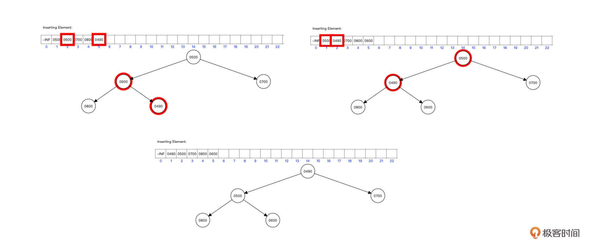 继续插入490,插入过程如下图所示: