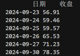 代码第 22 ~ 25 行是获取指定日期前后三天的收盘价,并将这两组数据合并成一组。