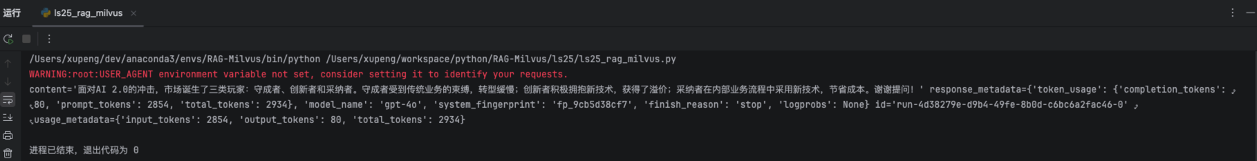 下面的图就是上面程序的执行结果,你就会发现,我们已经实现了一个简单的基于你个人知识文件的问答与检索。