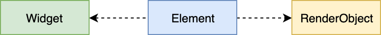 其中,Widget是Flutter世界里对视图的一种结构化描述,里面存储的是有关视图渲染的配置信息;Element则是Widget的一个实例化对象,将Widget树的变化做了抽象,能够做到只将真正需要修改的部分同步到真实的Render Object树中,最大程度地优化了从结构化的配置信息到完成最终渲染的过程;而RenderObject,则负责实现视图的最终呈现,通过布局、绘制完成界面的展示。