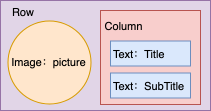 接下来,我以下面的界面示例为例,与你说明Widget、Element与RenderObject在渲染过程中的关系。在下面的例子中,一个Row容器放置了4个子Widget,左边是Image,而右边则是一个Column容器下排布的两个Text。