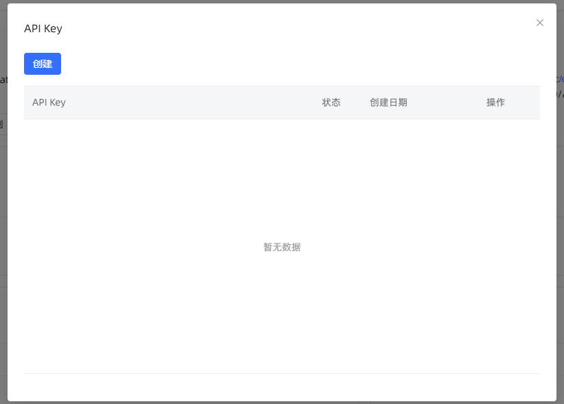 我们首先点击 API Key,创建一个密钥,用于对 API 的访问。