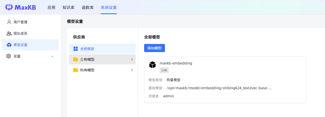 我们先把模型都设置好,点击系统设置-模型设置,就可以添加模型了。
