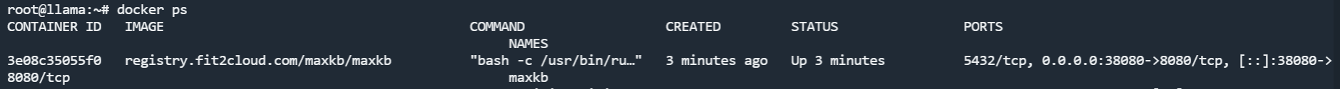 1 | docker run -d --name=maxkb --restart=always -p 8080:8080 -v ~/.maxkb:/var/lib/postgresql/data -v ~/.python-packages:/opt/maxkb/app/sandbox/python-packages registry.fit2cloud.com/maxkb/maxkb |