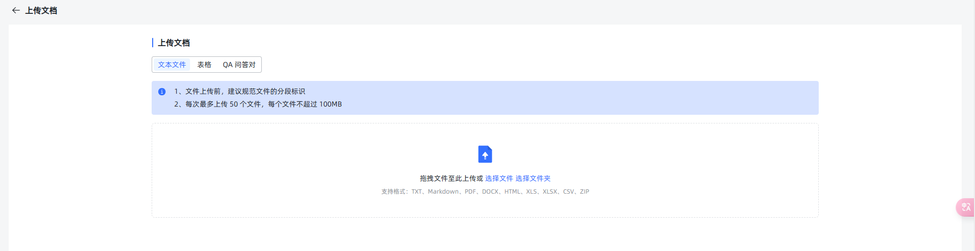 文档上传后,会自动进行分段,并显示出预览。
