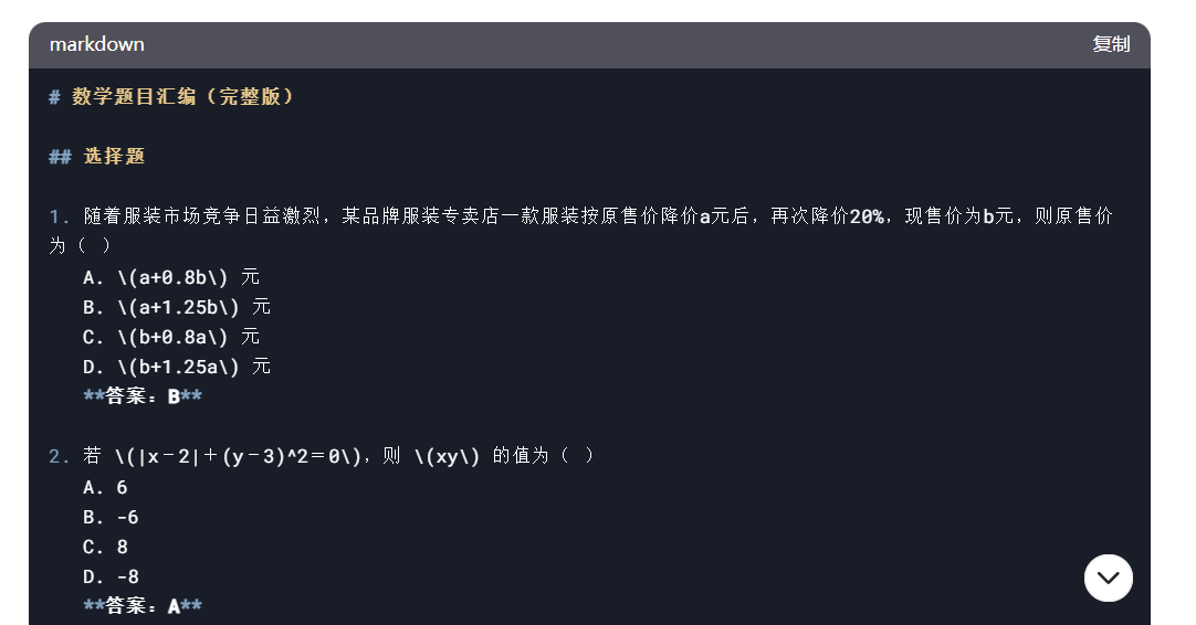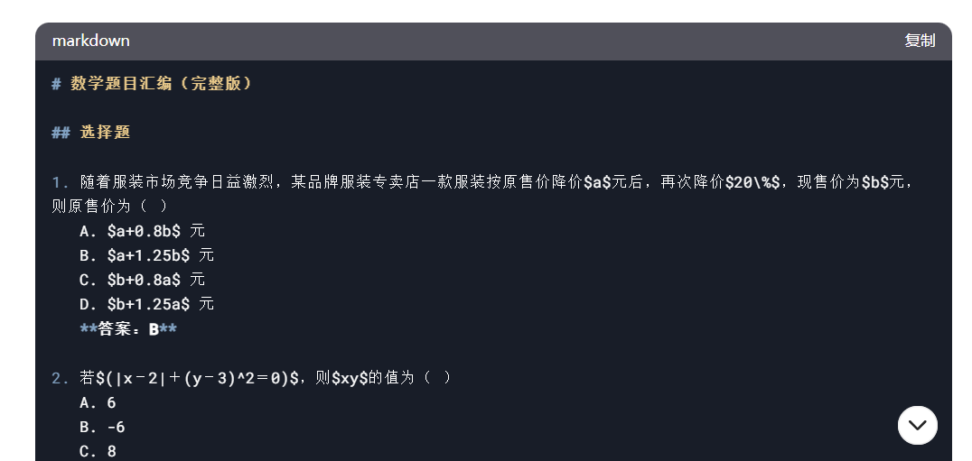 最后还需要让 DeepSeek 将字符串格式的公式转成 Inline Math 的格式: