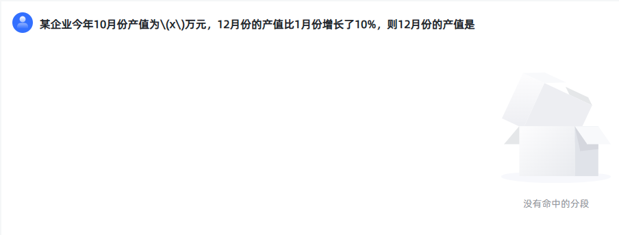 1 | 某企业今年10月份产值为\(x\)万元,12月份的产值比1月份增长了10%,则12月份的产值是() |
