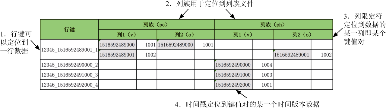 HBase的逻辑模型其实跟关系型数据库类似,但是HBase会保存多个版本的数据,默认情况下会读取数据的最新版本,你也可以指定版本或者时间区间来读取一个历史的数据版本。