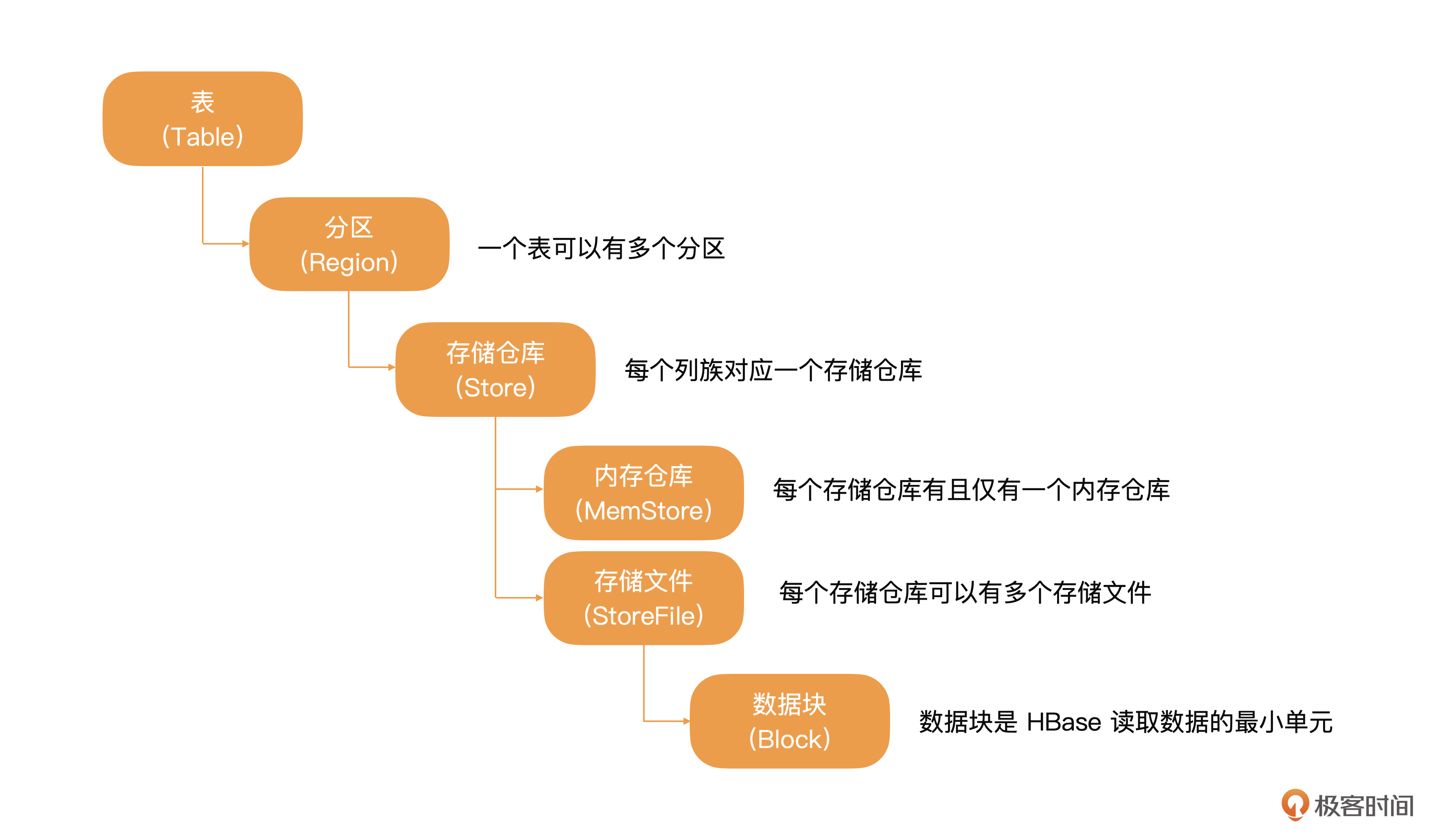 那HBase是如何存储这些分区的呢?再来看看HBase数据存储的物理模型。