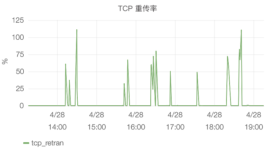 以我们常见的TCP重传为例,如果你熟悉的话,服务器上一般都会有TCP重传率的监控,如下图所示: