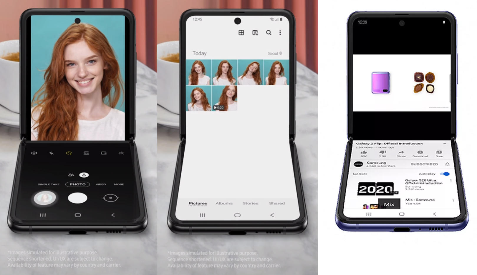 拍照的时候中间态可以模拟三脚架,而且镜头的方向也能够根据需求灵活调整。比如对于自拍来说,你就可以展露双手,让你的自拍显得更为自然。三星的Galaxy Z Flip的Flex Mode就利用了这种中间态。