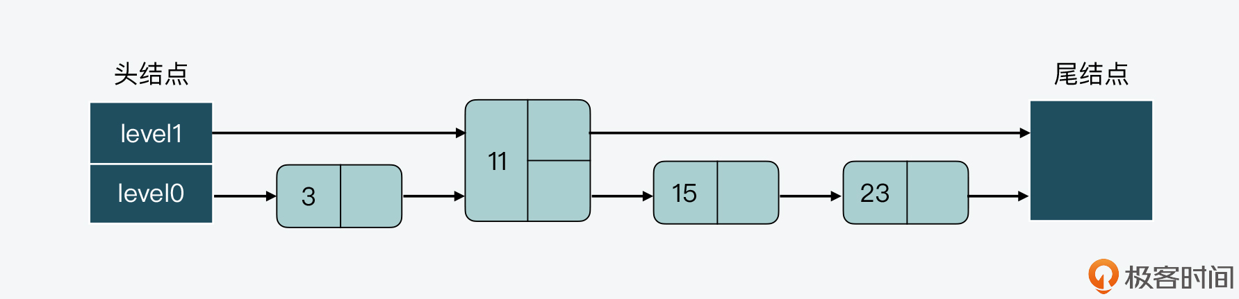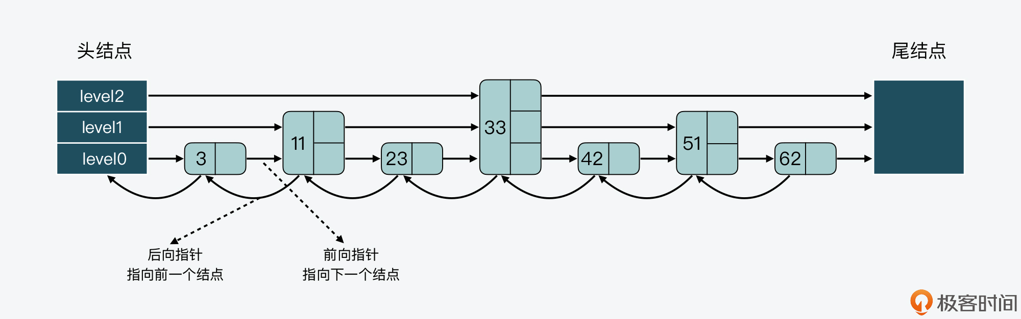 好,在对跳表有了直观印象后,我们再来看看跳表实现的具体数据结构。