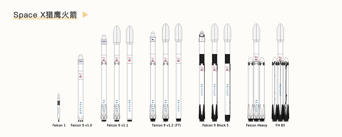 Space X的猎鹰火箭总共有三个主型号,分别为猎鹰1号、猎鹰9号和重型猎鹰。