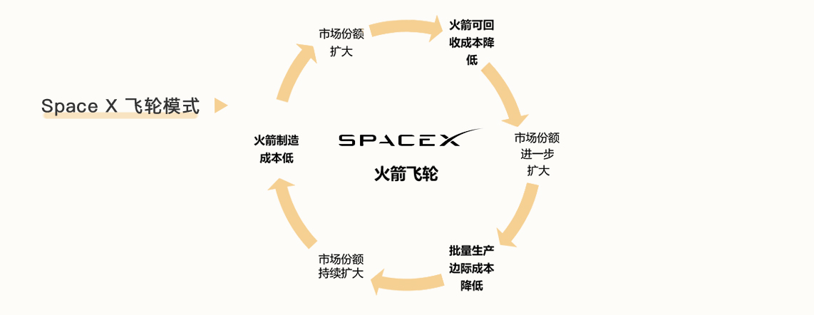 大部分人会认为猎鹰火箭之所以便宜,是因为其可回收的设计理念,其实这只是猎鹰火箭成本低的一环,还有另外两个重要原因:一个是其生产成本本来就低,另一个是其批量复用设计理念以及批量制造边际成本下降。这三个核心策略推动了猎鹰火箭的成本持续降低,形成了其独有的成本“飞轮模式”。