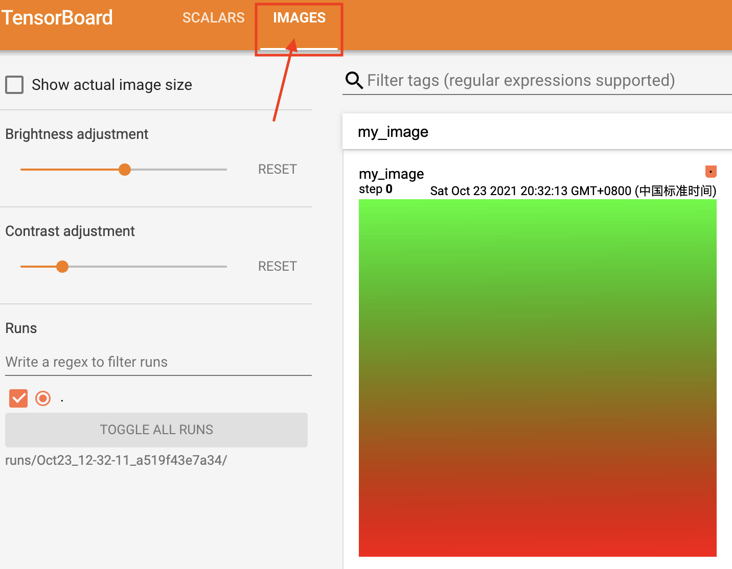 在“IMAGES”的标签页中,可以显示刚刚用add_image方法记录的图像数据,如下图所示。